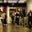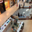Ambiance centre commercial, signaux d'alarme, voix des gens, climatisation.