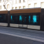 Passage devant Miniprix, rideau métallique, musique, passage tramway, voix des gens piétons, circulation