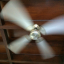 Ventilateur de plafond, faible activité dans la pièce à côté, moineaux dans le jardin.