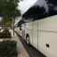 Moteur d'un car à l'arrêt, enregistré à l'arrière.